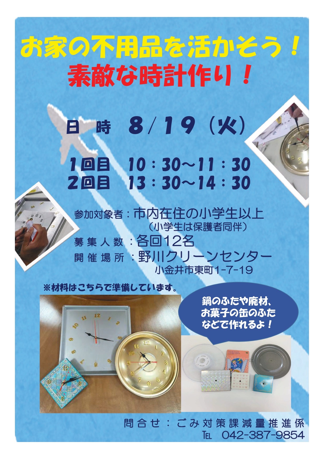 ◆2025/8/19(火) ①10:30-11:30 ②13:30-14:30 野川クリーンセンター(小金井市東町1-7-19)