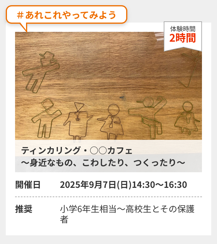 【学校に行きづらさを抱える子むけ】ティンカリング・〇〇カフェ