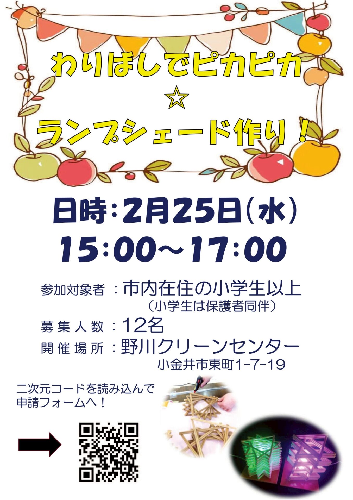 ◆2026/2/25(水)15:00-17:00 野川クリーンセンター(小金井市東町1-7-19) 市内在住の小学生以上(小学生は保護者同伴) 申し込みあり ¥0