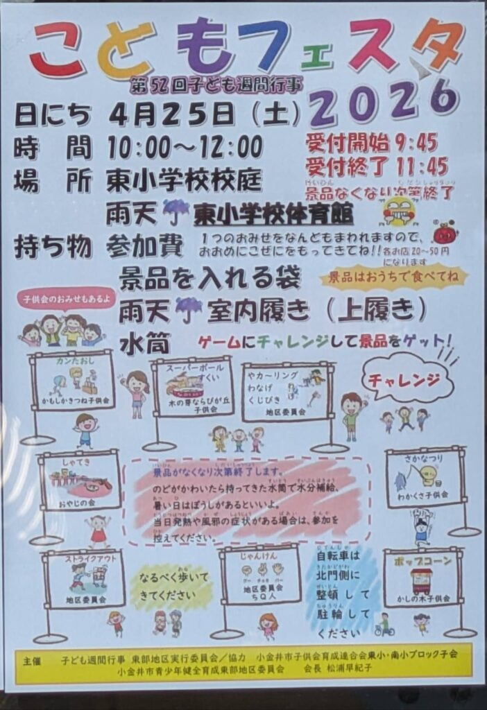 ◆2026/4/25(土)10:00-12:00 東小学校校庭 参加費あり 申し込みなし