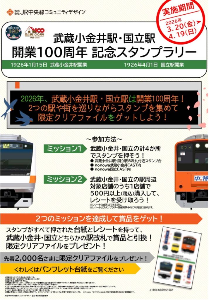 【スタンプラリー】武蔵小金井駅・国立駅開業100周年