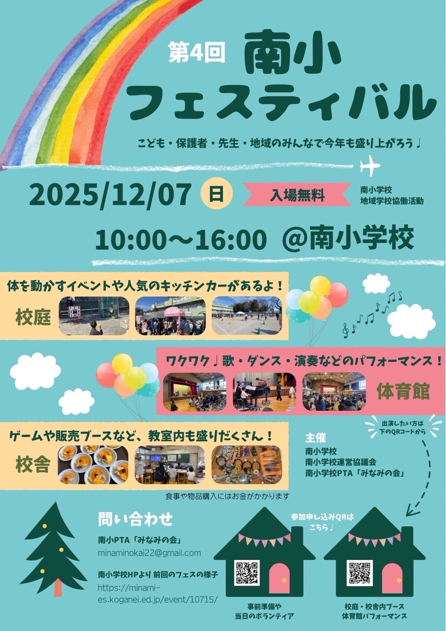◆2025/12/7(日)10:00-16:00 小金井市立南小学校 申し込みなし ¥0