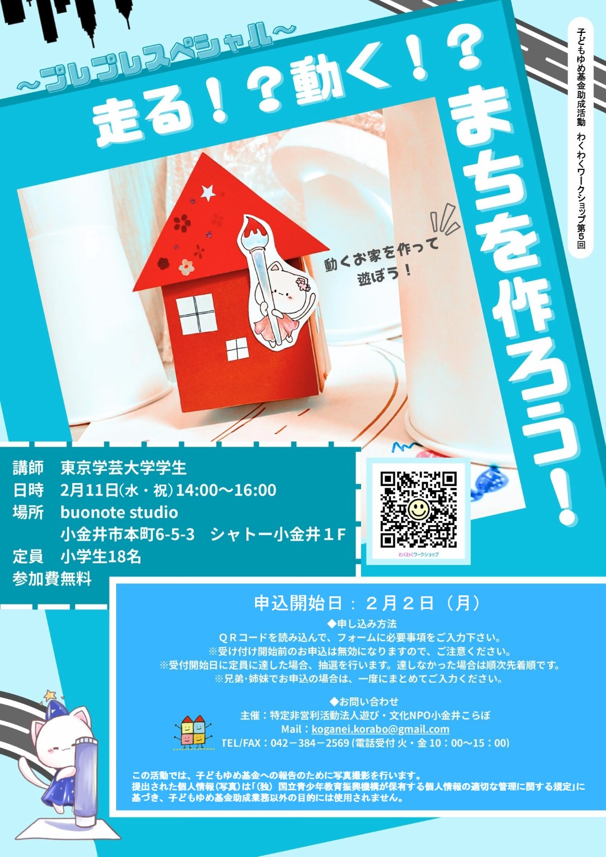 ◆2026/2/11(水・祝)14:00-16:00 buonote studio(小金井市本町6-5-3シャトー小金井1F) 小学生 申し込みあり ¥0