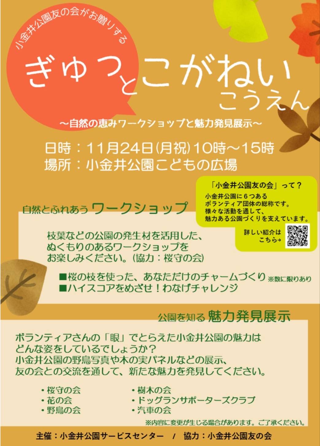 ◆2025/11/24(月祝)10:00-15:00 都立小金井公園こどもの広場 先着順 申し込みなし