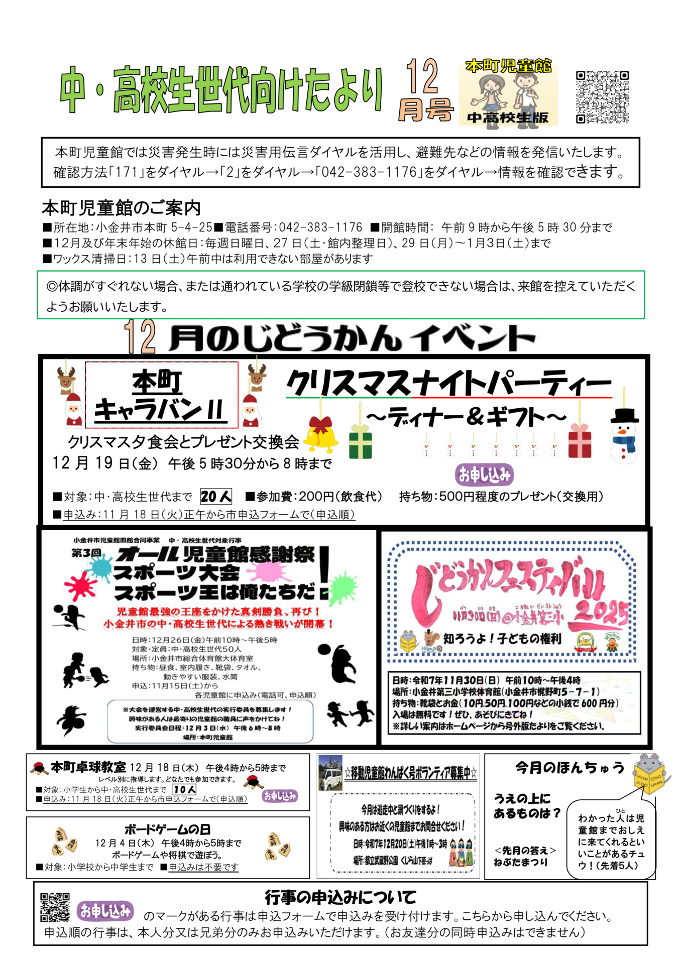 【中高生むけ】12月の児童館