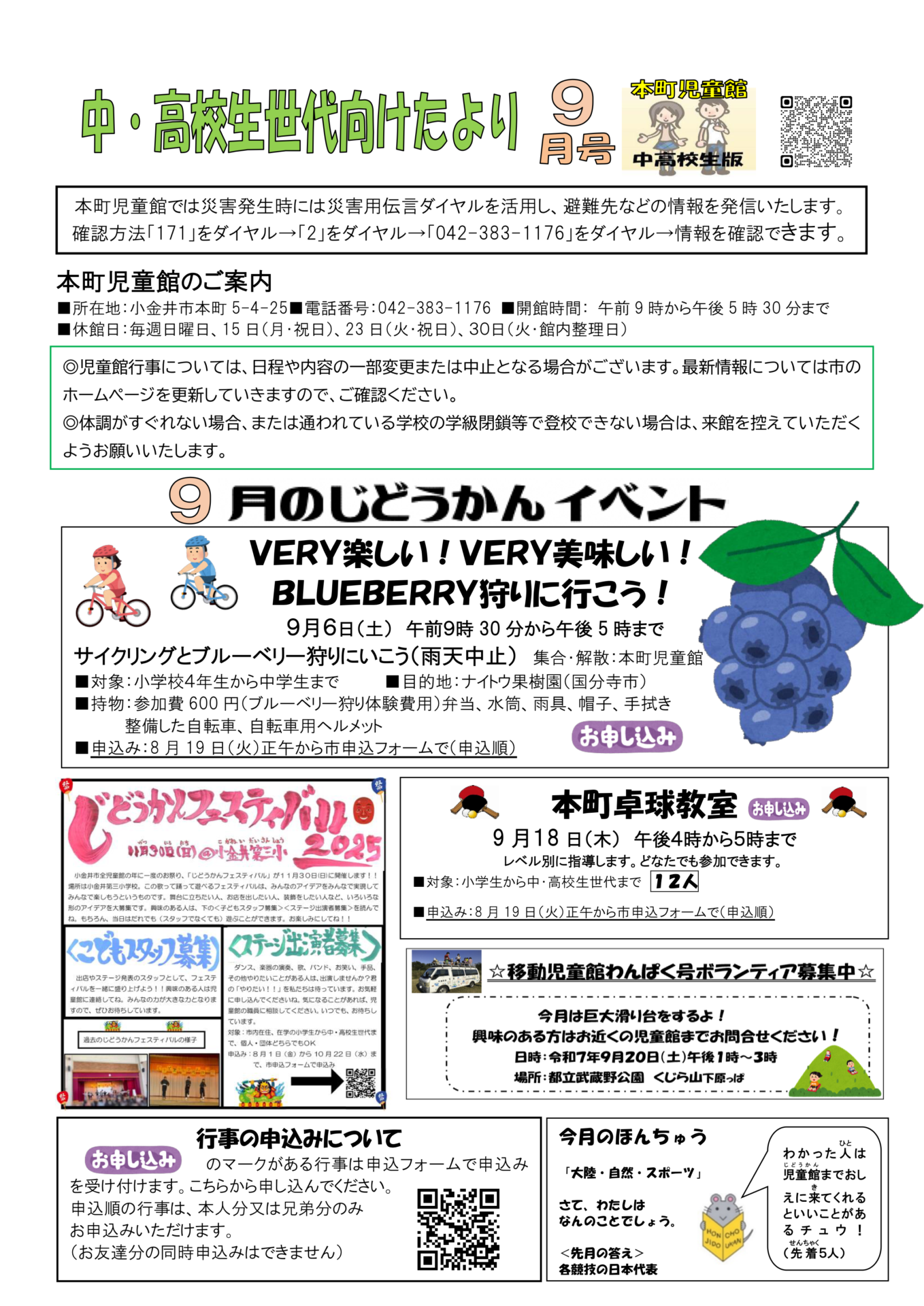 【中高生むけ】9月の児童館
