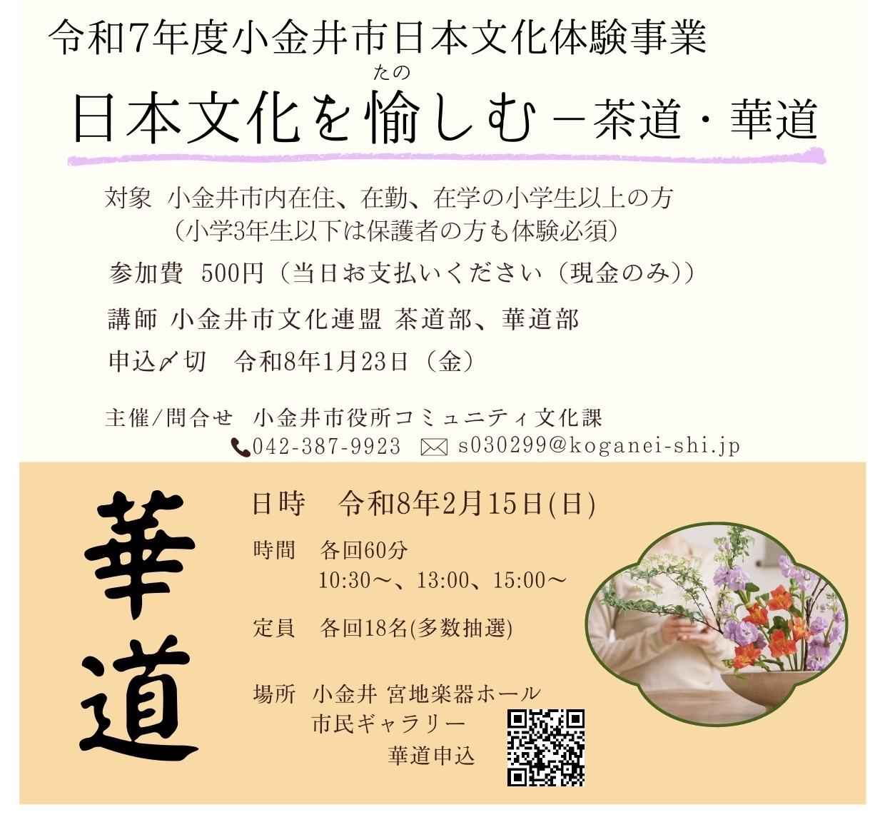 ◆2026/2/15(日)①10:30②13:00③15:00 小金井宮地楽器ホール市民ギャラリー 小金井市内在住、在学、在勤の小学生以上の方(小3生以下は保護者の方も体験必須) 申し込みあり ¥500 >申し込みはこちら