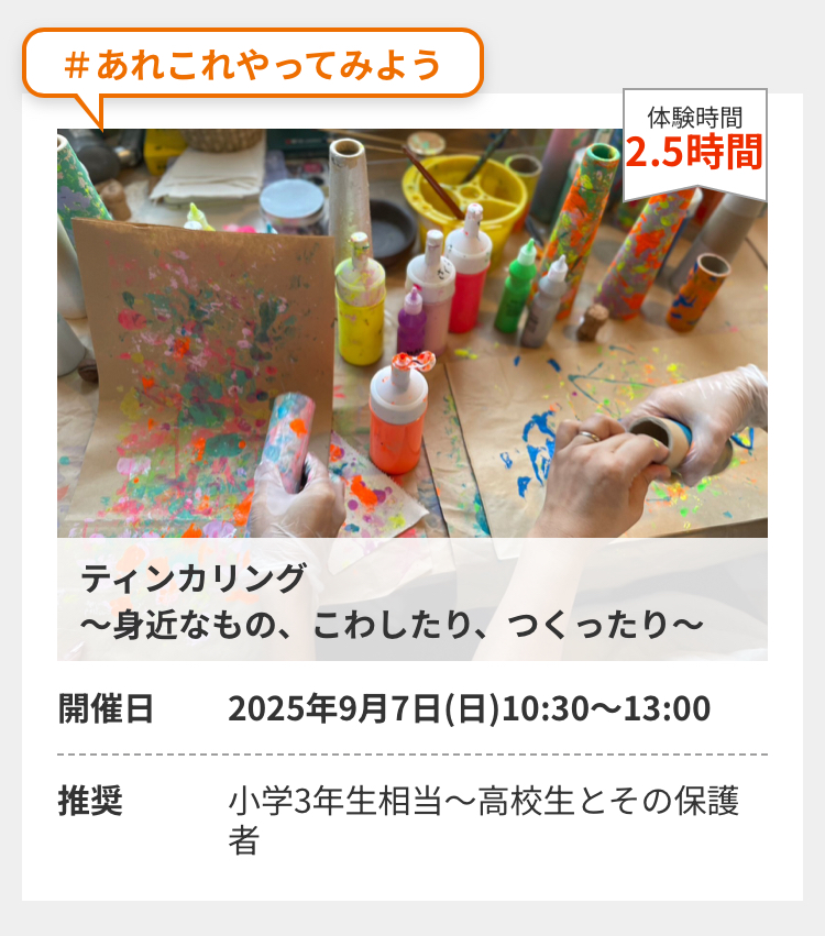 ◆2025/9/7(日)10:30-13:00 アートスポットシャトー2F 小学3年生相当〜高校生とその保護者 申し込みあり ¥0