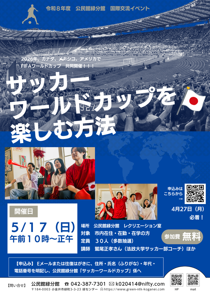 ◆2026/5/17(日)10:00-12:00 公民館緑分館 市内在住・在勤・在学の方 申し込みあり ¥0