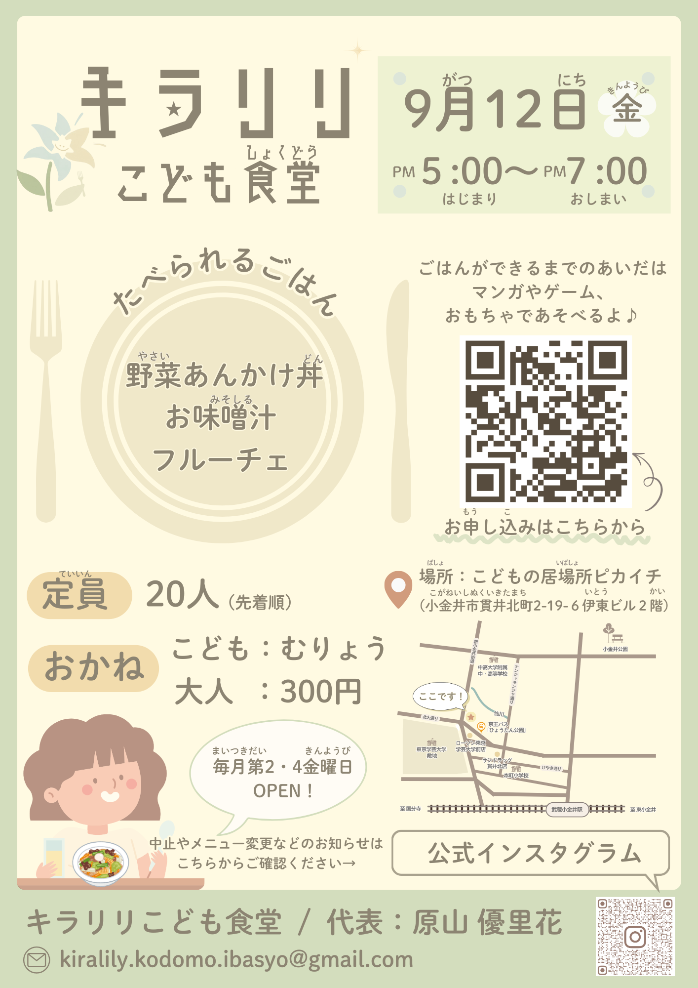 ◆2025/9/12(金),26(金)17:00-19:00 こどもの居場所ピカイチ(小金井市貫井北町2-19-6伊東ビル2階) 申し込みあり 子ども¥0,大人¥300